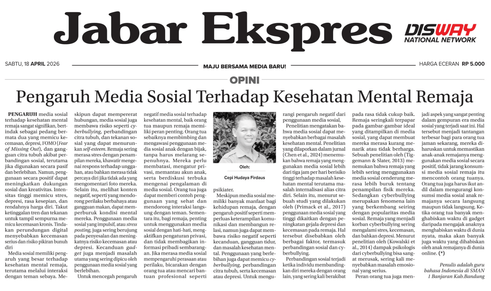 Sebuah Artikel Karya Bapak Cepi Hudaya Firdaus Refleksi yang dikemukakan oleh Bapak Cepi Hudaya Firdaus tentang Pengaruh M...