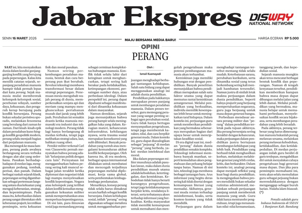 Artikel yang berjudul “Perang” karya Bapak Ismail Kusmayadi menggambarkan bagaimana perang telah menjadi bagian dari perja...